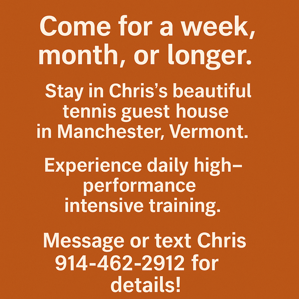 Chris studied religion and literature at Cornell, Harvard, and Columbia, and is currently pursuing a PhD in kinesiology. His academic background informs his rigorous biomechanical and tactical approach to coaching. In addition to tennis, he is a licensed AEMT and volunteers with his local ambulance service in Vermont, where he lives and coaches full-time.